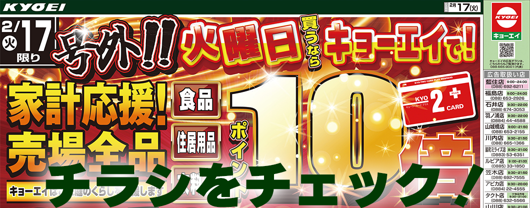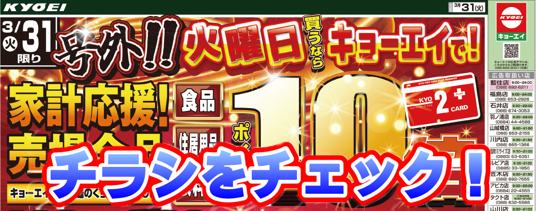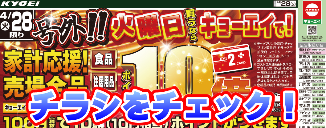 期間限定!火曜日広告の品キョーツーカードポイント10倍!!