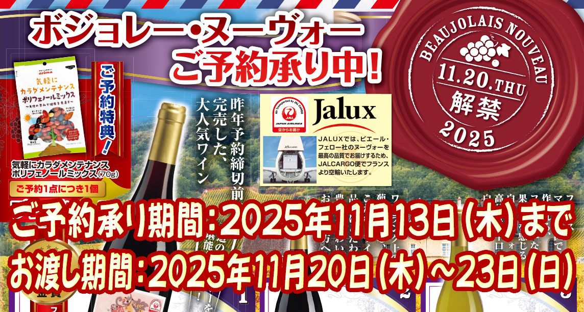 『ボジョレー・ヌーヴォー 2025』ご予約承り中!