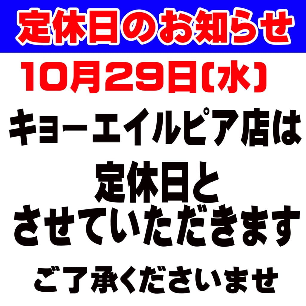 10月29日(水)キョーエイルピア店定休日のお知らせ