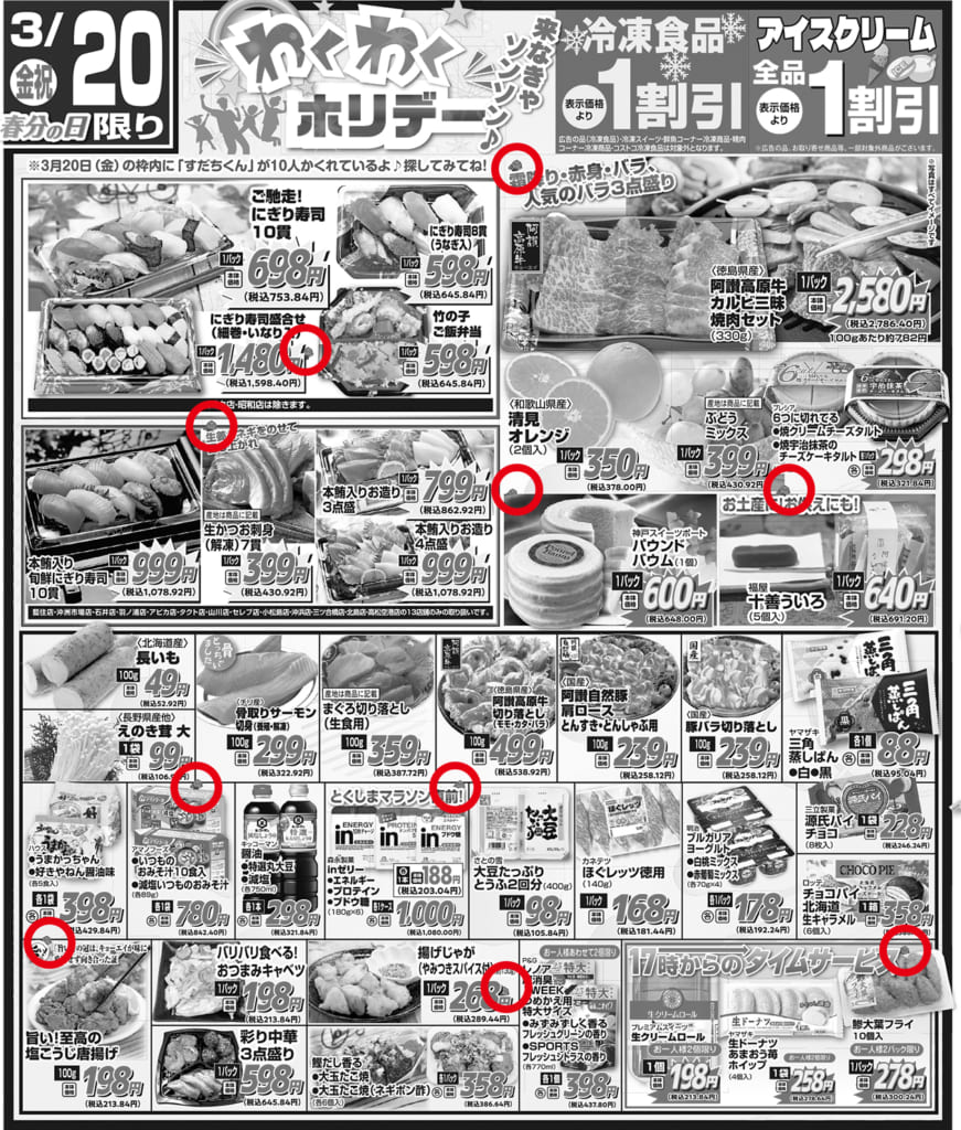 3/19(木)チラシ 金曜日枠内「すだちくん」を探せ! 答え合わせ♡