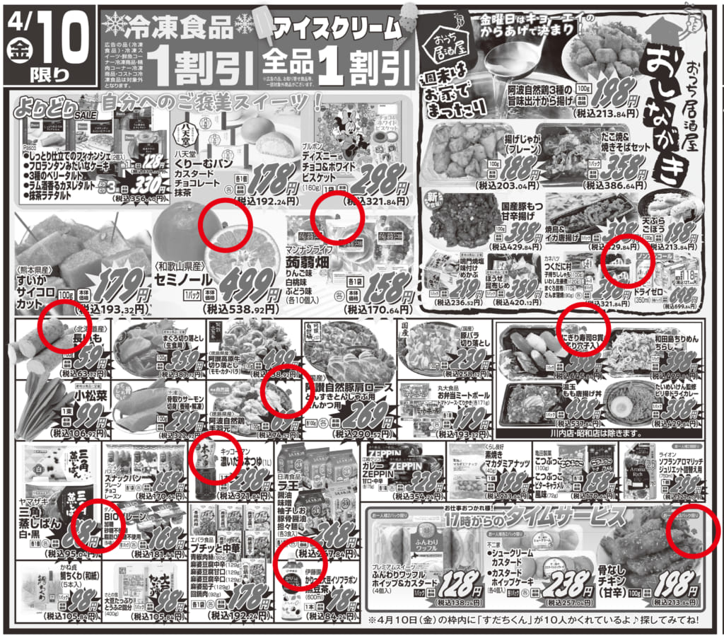 4/9(木)チラシ 金曜日枠内「すだちくん」を探せ! 答え合わせ♡