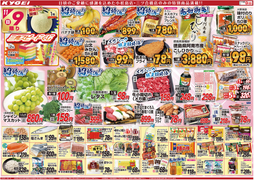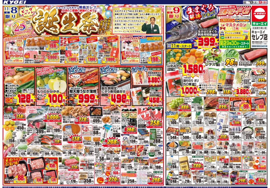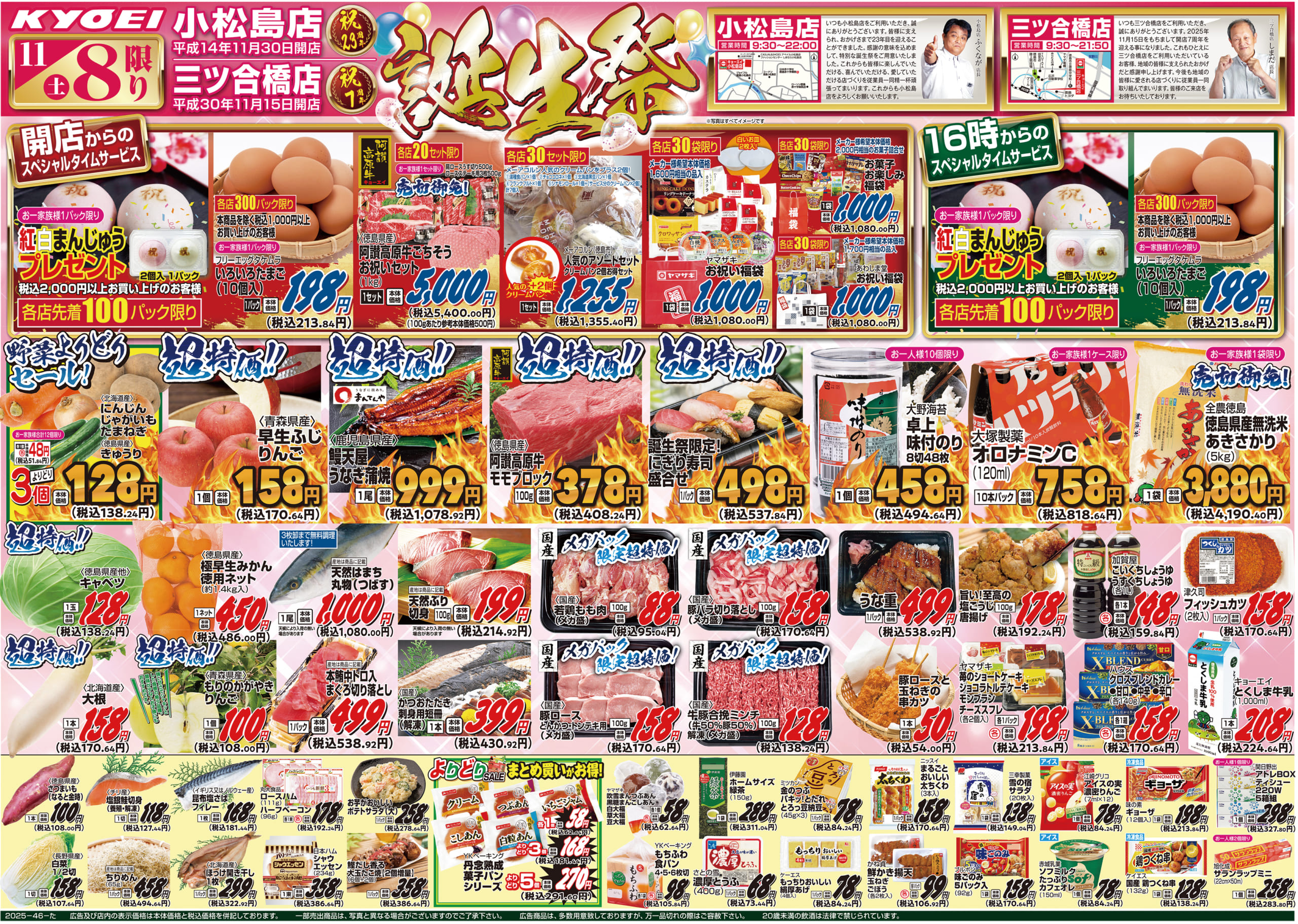 2025年11月08日(土)配布チラシ『小松島店・三ツ合橋店限定 誕生祭!』