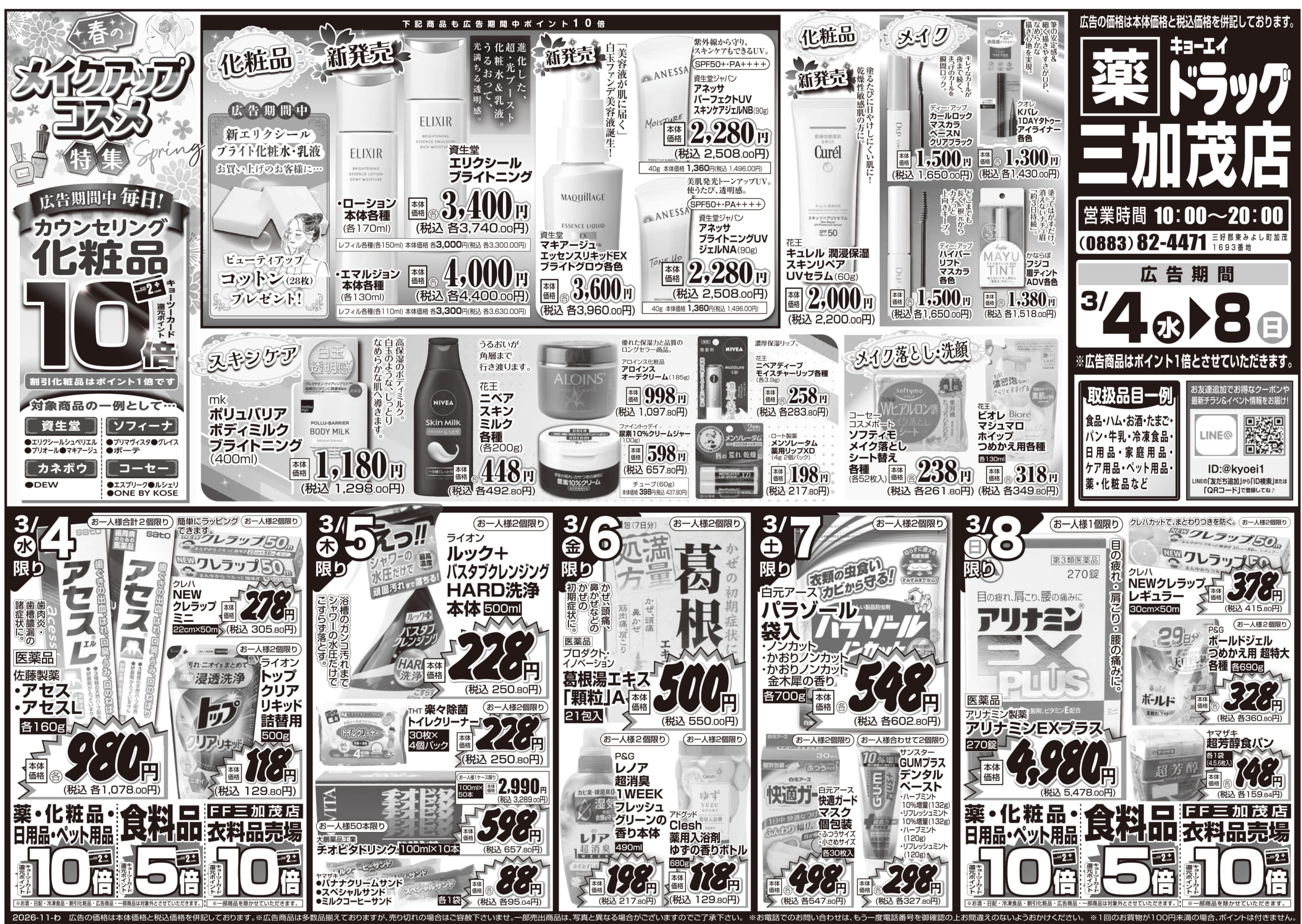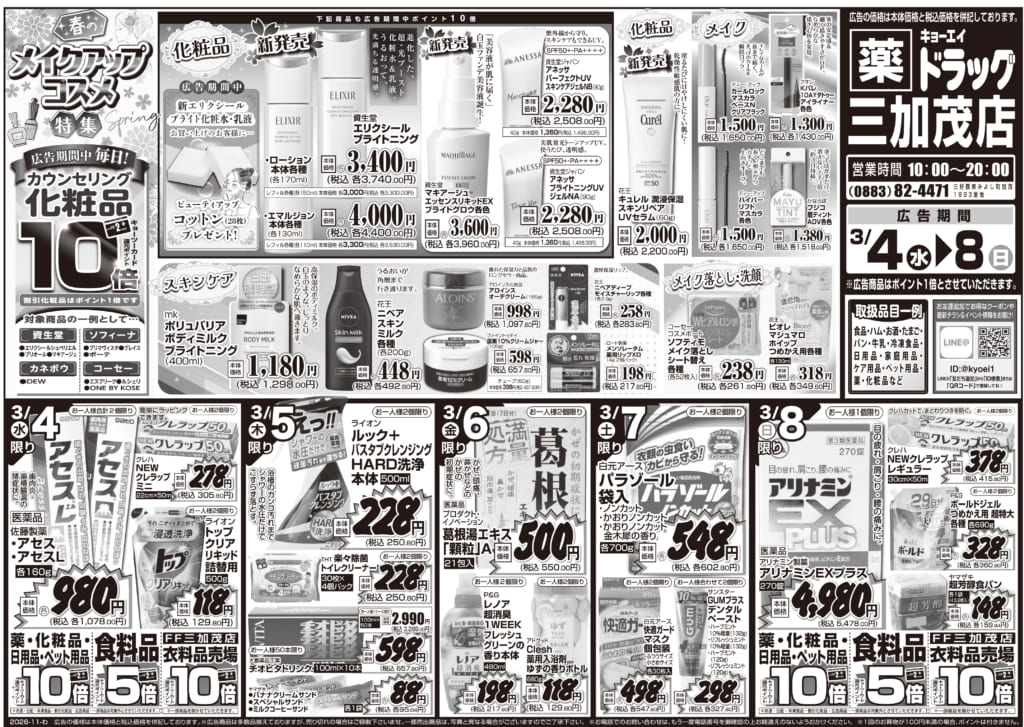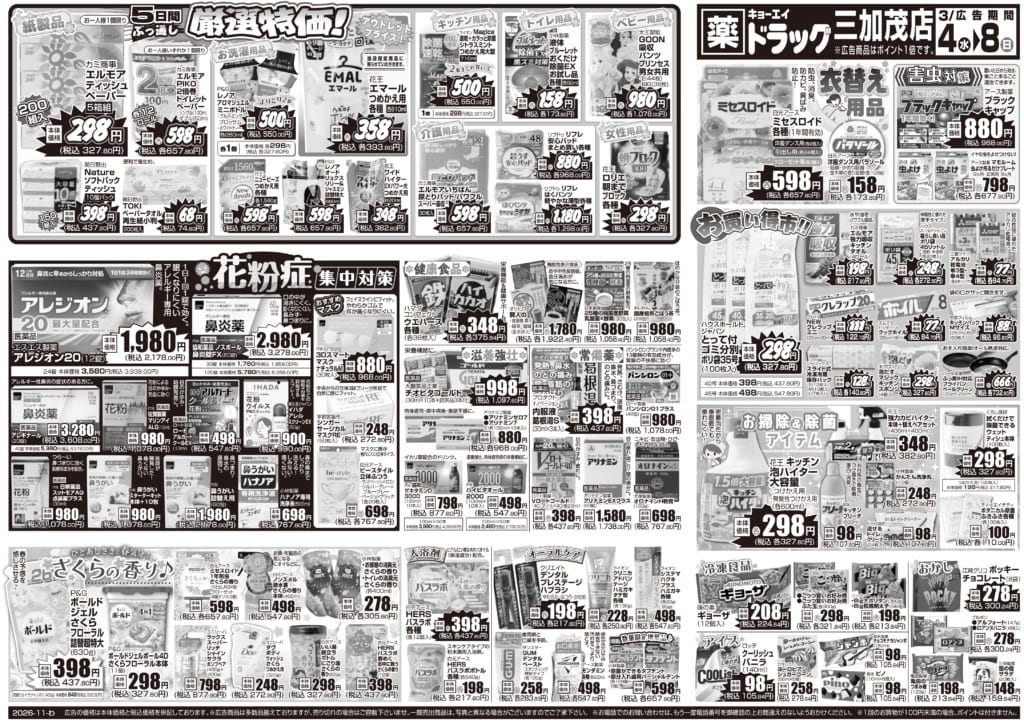 2026年3月4日(水)配布ちらし ドラッグ三加茂店『花粉症対策&厳選特価』