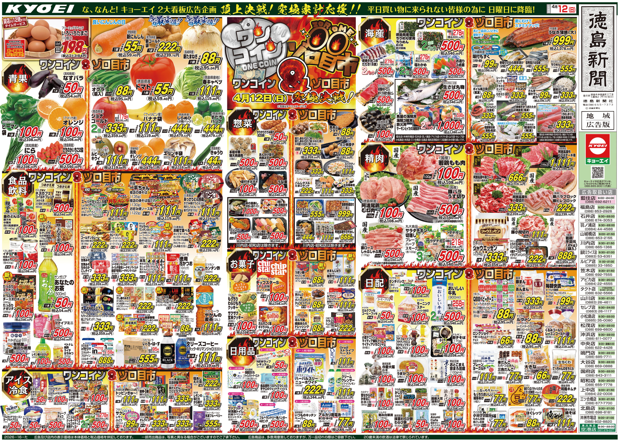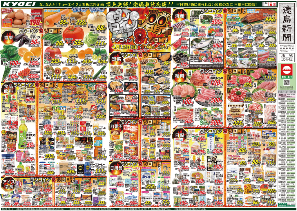 2026年4月12日(日)配布ちらし『ワンコイン&ゾロ目市』