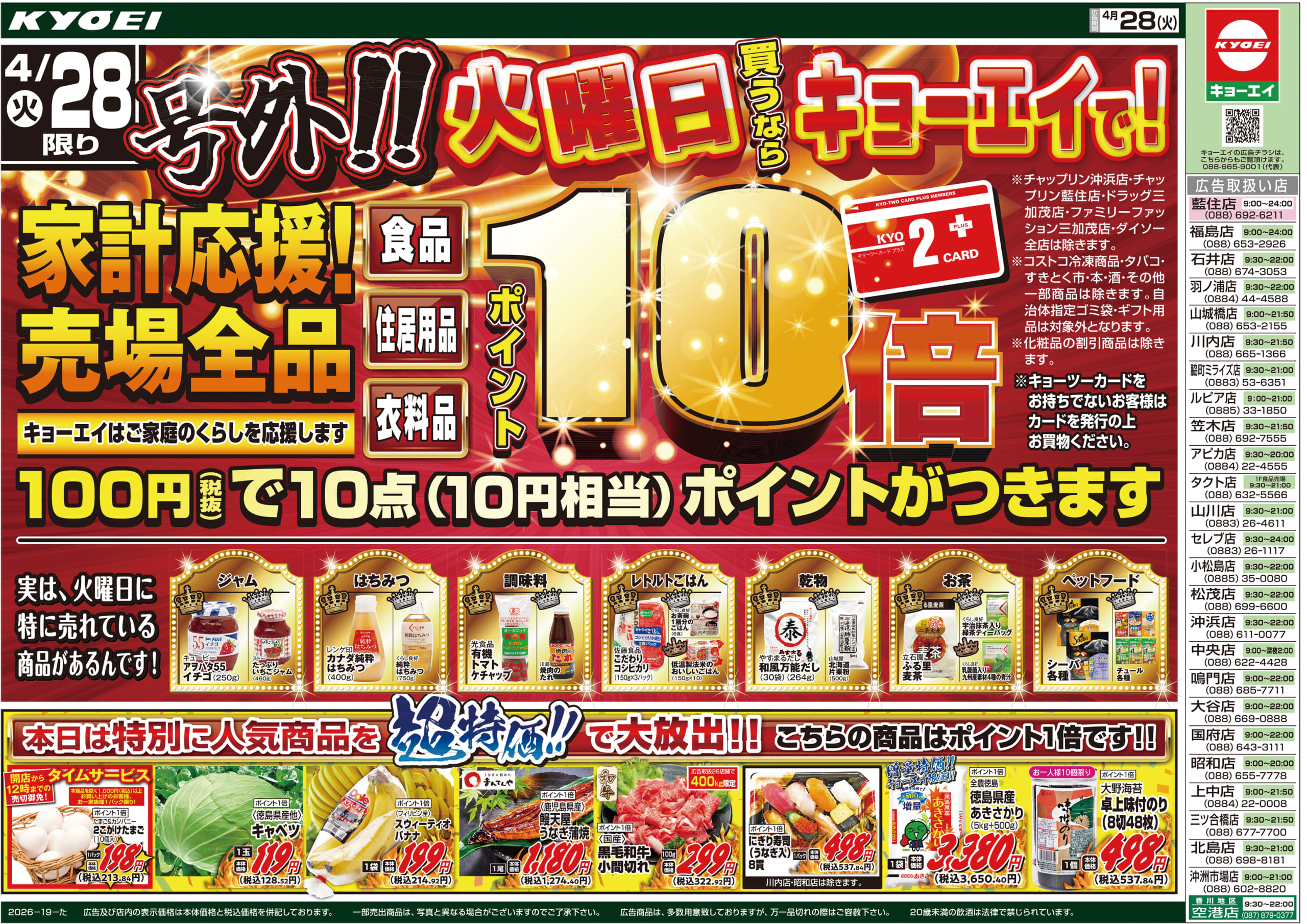 2026年4月28日(火)配布チラシ『号外!!火曜日ポイント10倍』