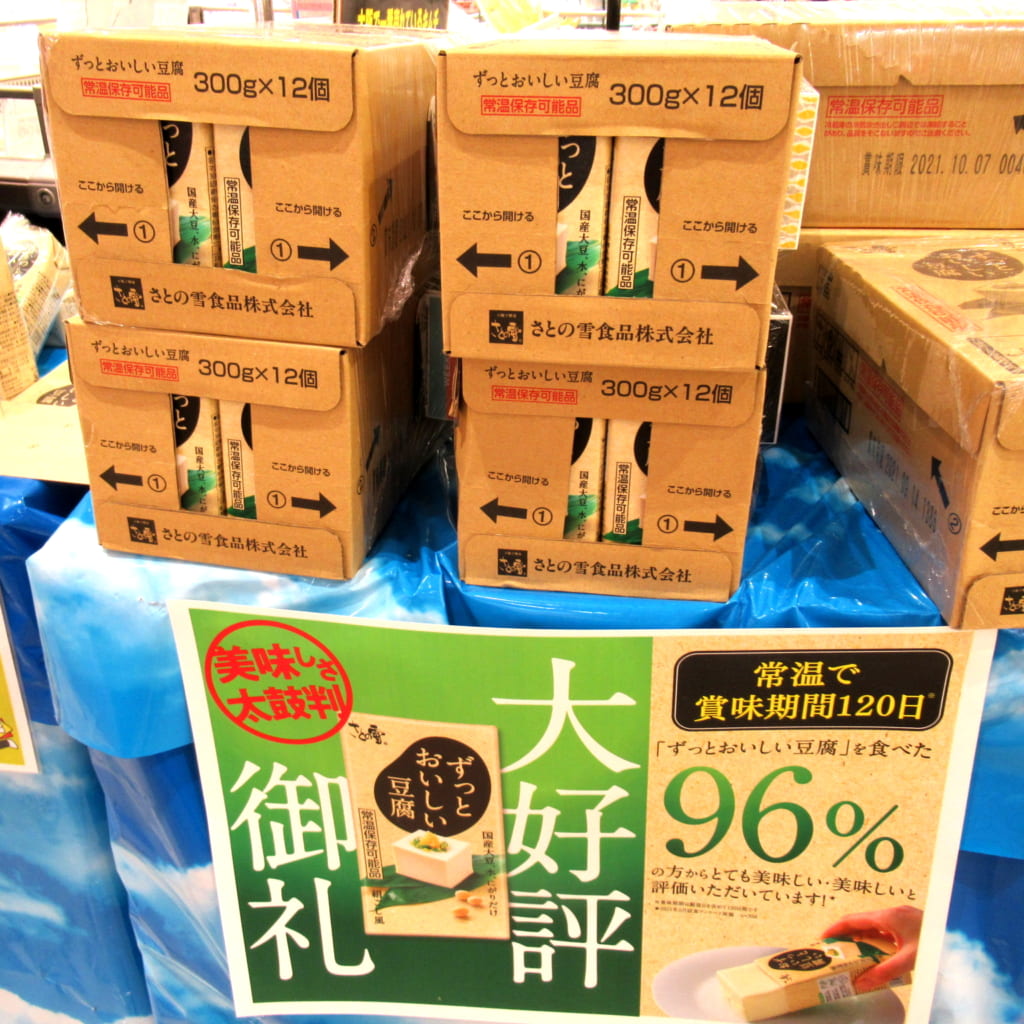 ずっと、美味しい。すごく、美味しい。さとの雪さん『ずっとおいしい豆腐』 【夢のお豆腐ケース買い】キョーエイ三ツ合橋店より ずっと、外に出たかった(冷蔵庫の)ずっと、まとめ買いがしたかったずっと、ずっと・・・常温で賞味期限120日 さとの雪さん『ずっとおいしい豆腐』 ずっと、美味しい♡ とても、美味しい♡大好評の声に、お応えして!! お豆腐界、初のケース買い!?”1ケースお買上”で、エコバッグプレゼント♡※なくなり次第終了と、なりますm(_ _)m