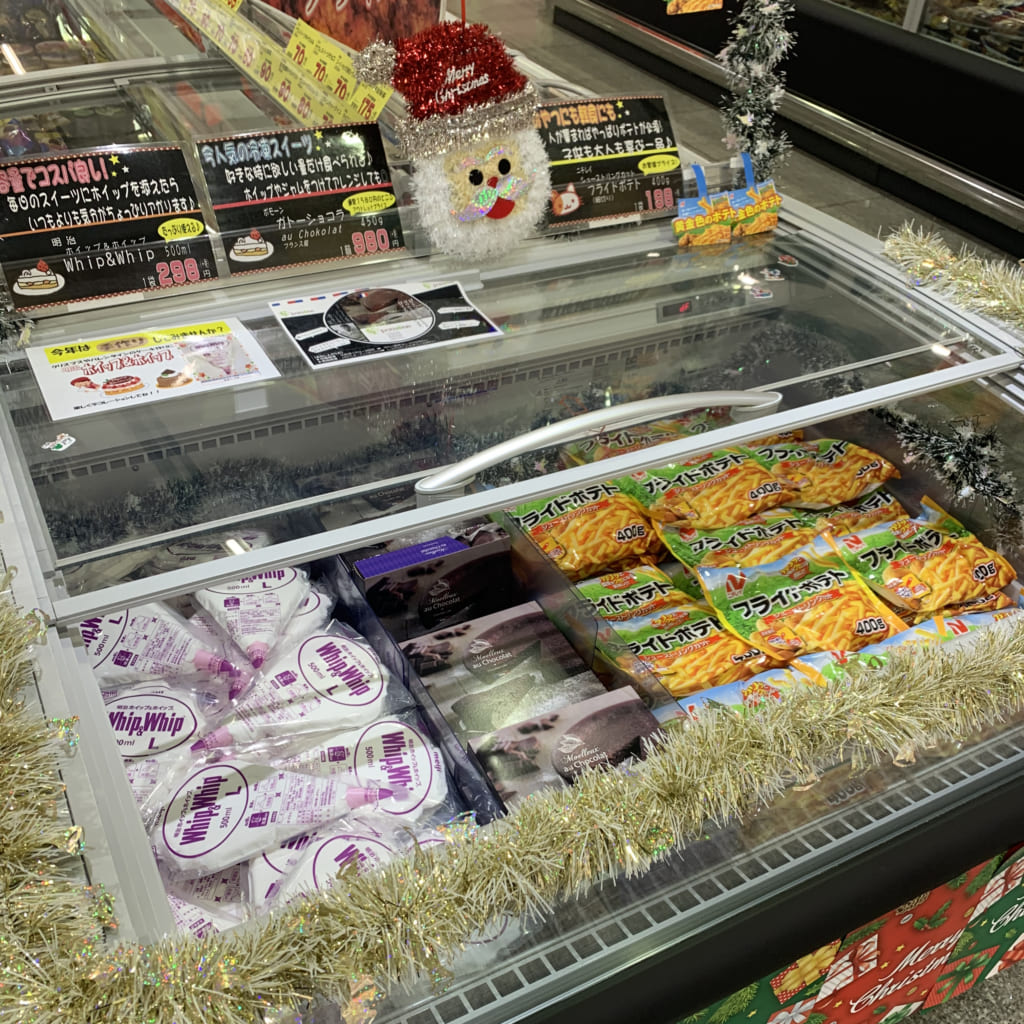 店長の!『グッとくるシリーズ』 いらっしゃいませいつもありがとうございますキョーエイ北島店です♪ 今週の『店長のグッとくるシリーズ』もうすぐ、クリスマス! ですよね♪ 当店入口には、徳島の名産「大野のり」の、クリスマスツリー! さらに推ススメは!明治さん「冷凍ホイップクリーム」お手軽で、まろやかで、美味しい♪ありそでなかった!? 冷凍ホイップ!クリスマスケーキに、推ススメです! 店長、推ススメ、お買得!売場も商品も、毎日何か、グッとくるはず!キョーエイ北島店! よろしく、どうぞ♪