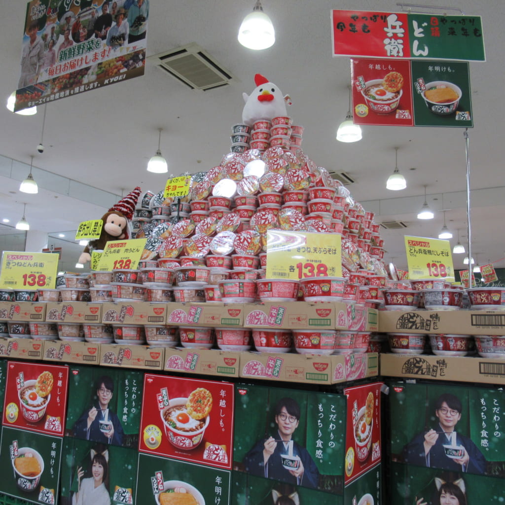 どん!どん!どん!どん!ピラミッド(*_*) 【上を向いて行こう】キョーエイ北島店より 巷で話題の?なにかと、やらかす(イイ意味で)♪北島店なのですが!? OHー! NOー! ノリーー!に、続きまして・・・『どん兵衛』ピラミッド!!!デケました(*_*) その広大な・・・ある意味、持て余し気味な?売場を活かす方法・・・あったでないで!?これからも、上を目指しますm(_ _)m