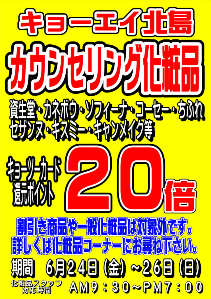 北島店化粧品コーナー『お買得!耳寄り情報』
